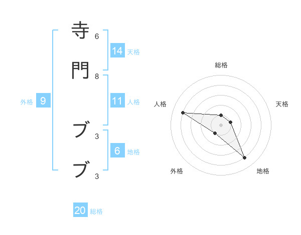 寺門 ブブさんの総格は20画の1点!