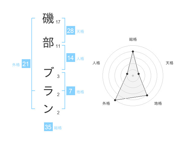 磯部 ブランさんを姓名の画数から五運を鑑定