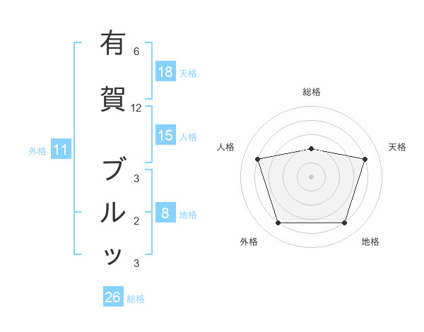 有賀 ブルッさんを姓名の画数から五運を鑑定