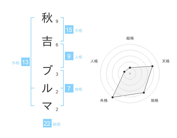 秋吉 ブルマさんを姓名の画数から五運を鑑定
