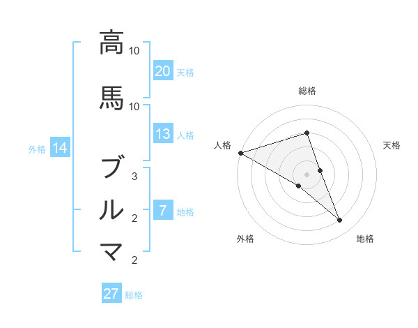 高馬 ブルマさんの総格は27画の3点!