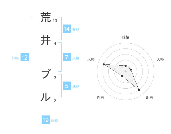 荒井 ブルさんの地格は5画の4点!