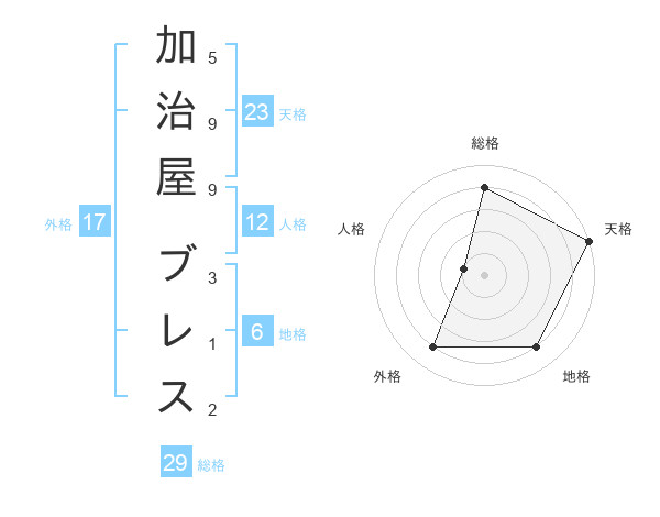 加治屋 ブレスさんの天格は23画の5点!