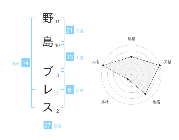 野島 ブレスさんを姓名の画数から五運を鑑定