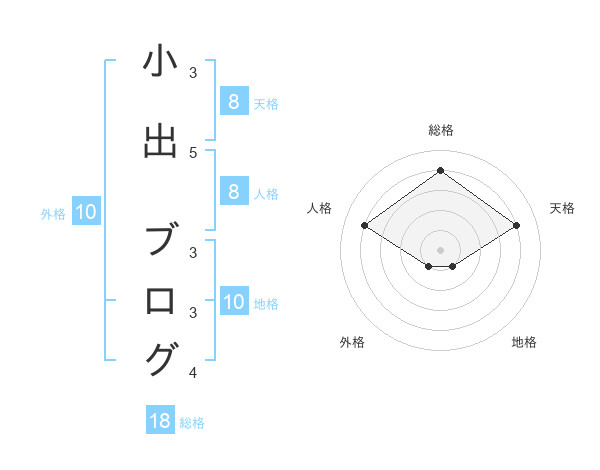 小出 ブログさんの地格は10画の1点!