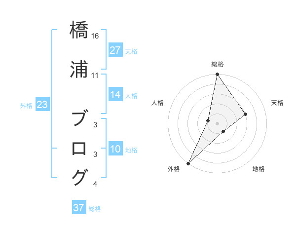 橋浦 ブログさんを姓名の画数から五運を鑑定
