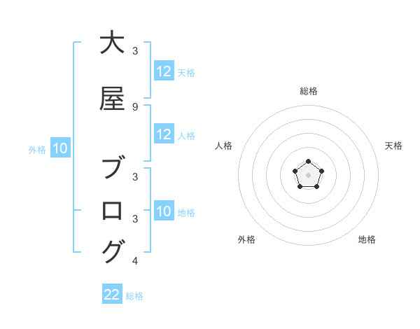 大屋 ブログさんを姓名の画数から五運を鑑定