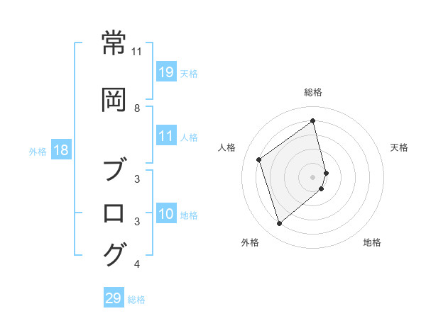 常岡 ブログさんを姓名の画数から五運を鑑定