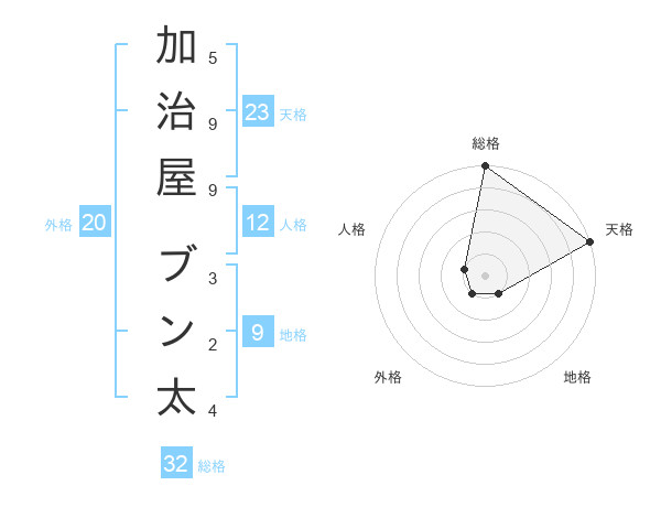 加治屋 ブン太さんの天格は23画の5点!