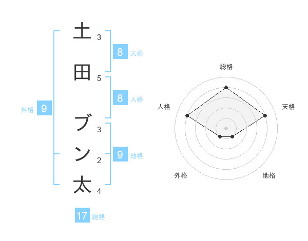 土田 ブン太さんの天格は8画の4点!