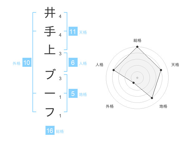 井手上 ブーフさんを姓名の画数から五運を鑑定
