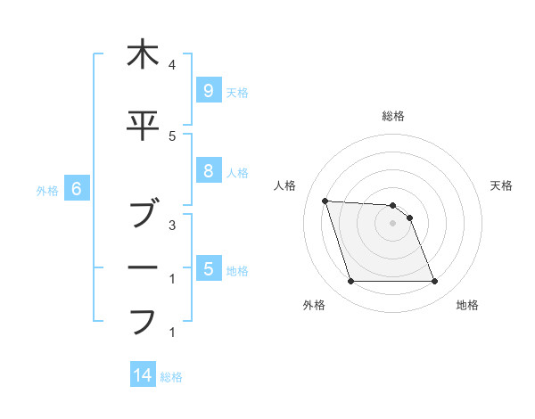 木平 ブーフさんの地格は5画の4点!
