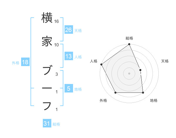 横家 ブーフさんを姓名の画数から五運を鑑定