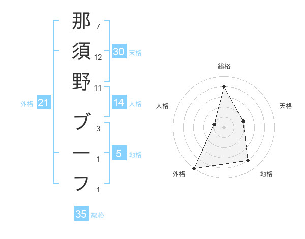 那須野 ブーフさんを姓名の画数から五運を鑑定