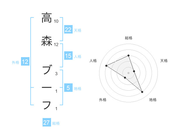 高森 ブーフさんを姓名の画数から五運を鑑定