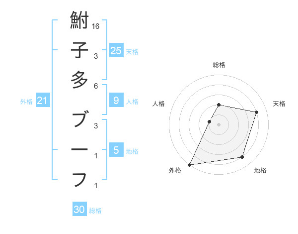 鮒子多 ブーフさんを姓名の画数から五運を鑑定