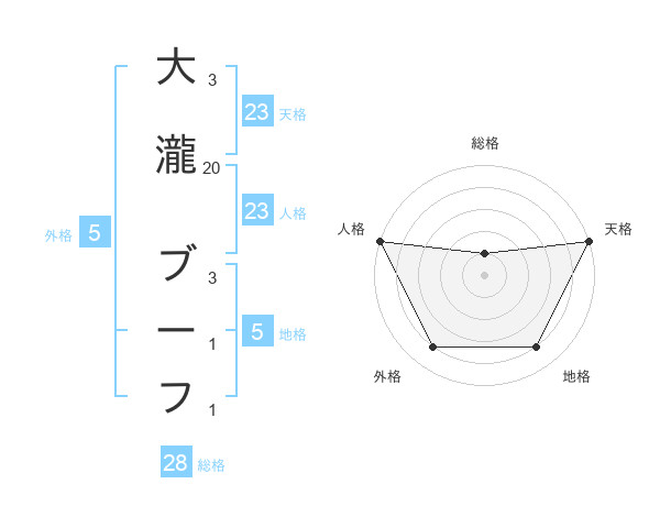 大瀧 ブーフさんを姓名の画数から五運を鑑定