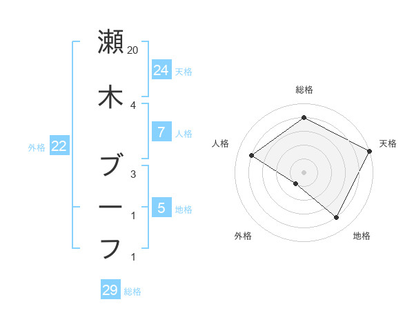 瀬木 ブーフさんを姓名の画数から五運を鑑定