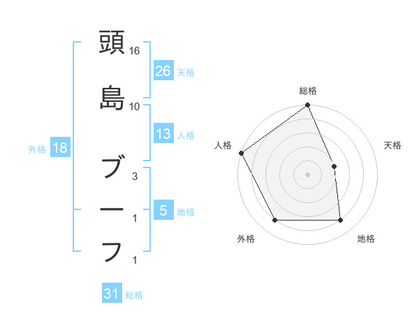 頭島 ブーフさんの総格は31画の5点!