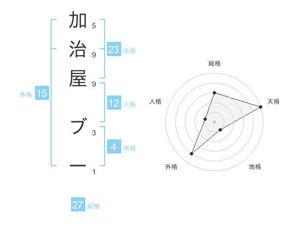 加治屋 ブーさんを姓名の画数から五運を鑑定