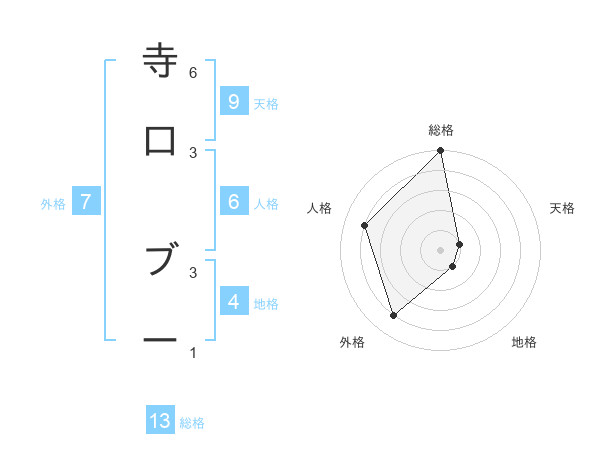寺口 ブーさんの総格は13画の5点!