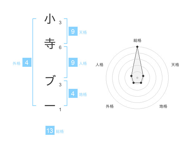 小寺 ブーさんを姓名の画数から五運を鑑定