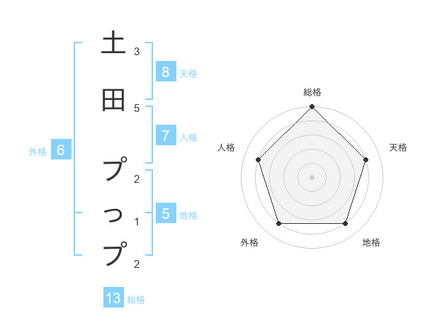 占い結果は姓名判断である以上、良い場合も悪い場合もありますが、決してお名前を誹謗中傷するものでなく、画数の自動計算によって得られたものです。また、本サイトの検索によって得られた鑑定結果で、第三者を誹謗中傷したり名誉を棄損するような行為を禁じます。