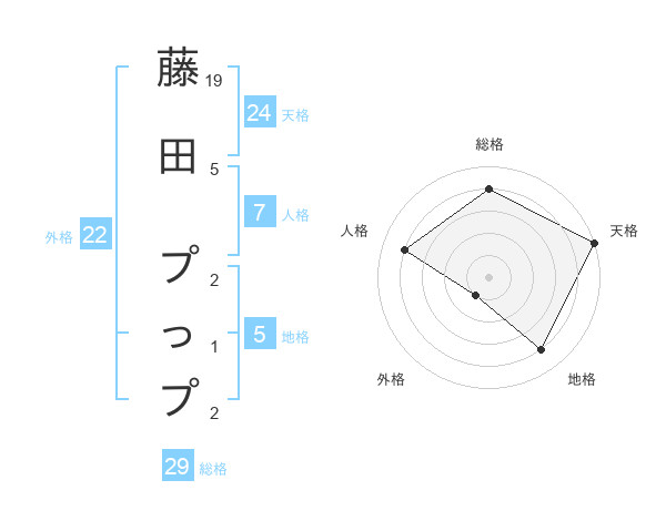 藤田 プっプさんを姓名の画数から五運を鑑定