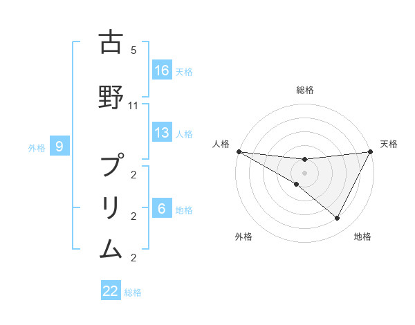 古野 プリムさんの総格は22画の1点!