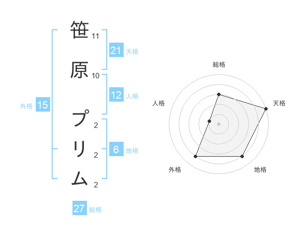 笹原 プリムさんの総格は27画の3点