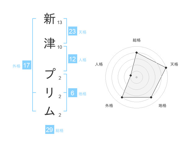 新津 プリムさんの総格は29画の4点!