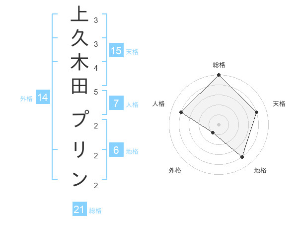 上久木田 プリンさんの総格は21画の5点!