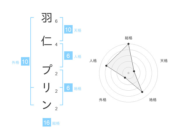羽仁 プリンさんの地格は6画の4点!