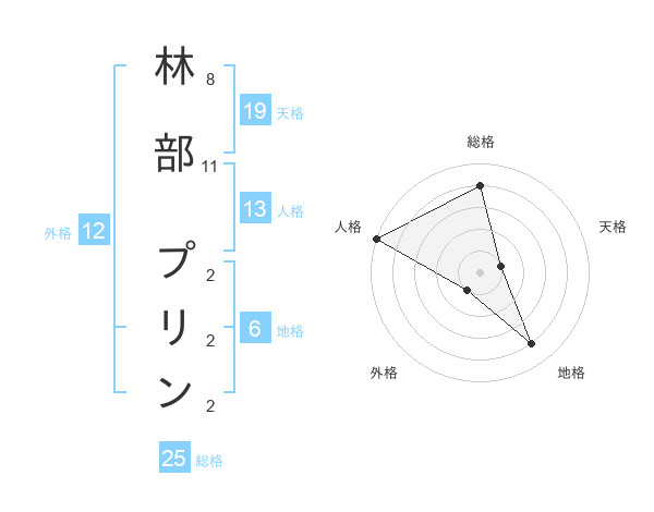 林部 プリンさんの総格は25画の4点!