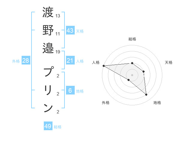 渡野邉 プリンさんを姓名の画数から五運を鑑定