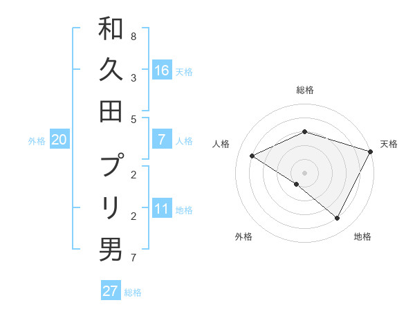 和久田 プリ男さんを姓名の画数から五運を鑑定