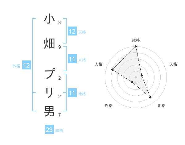 小畑 プリ男さんの天格は12画の1点!