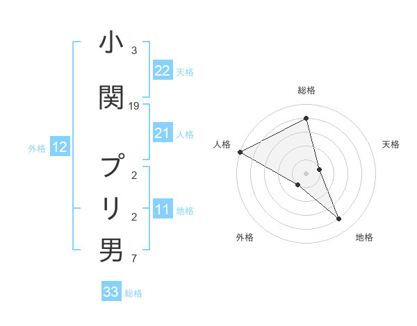 小関 プリ男さんを姓名の画数から五運を鑑定