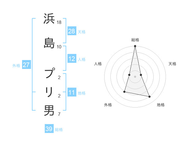 浜島 プリ男さんを姓名の画数から五運を鑑定
