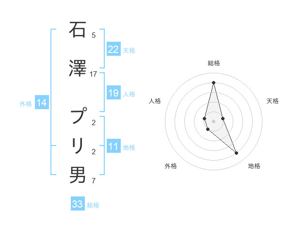 石澤 プリ男さんを姓名の画数から五運を鑑定