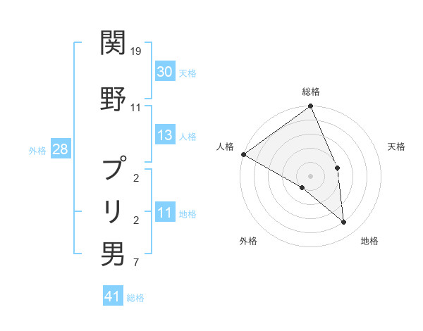 関野 プリ男さんを姓名の画数から五運を鑑定