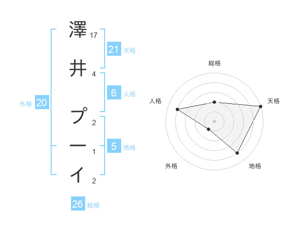 澤井 プーイさんを姓名の画数から五運を鑑定
