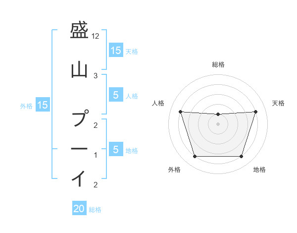 盛山 プーイさんを姓名の画数から五運を鑑定