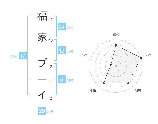 福家 プーイさんの天格は24画の5点!