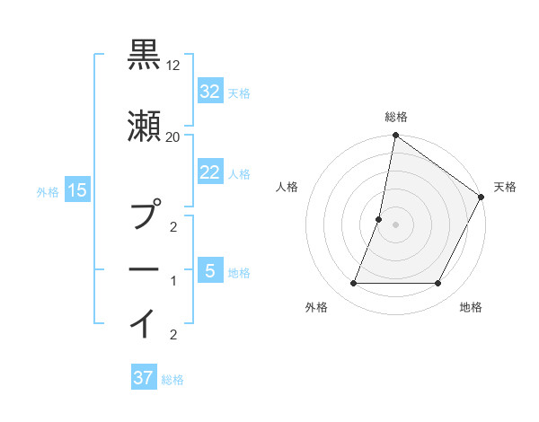 黒瀬 プーイさんを姓名の画数から五運を鑑定