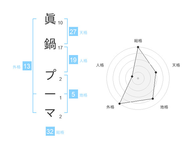 眞鍋 プーマさんを姓名の画数から五運を鑑定