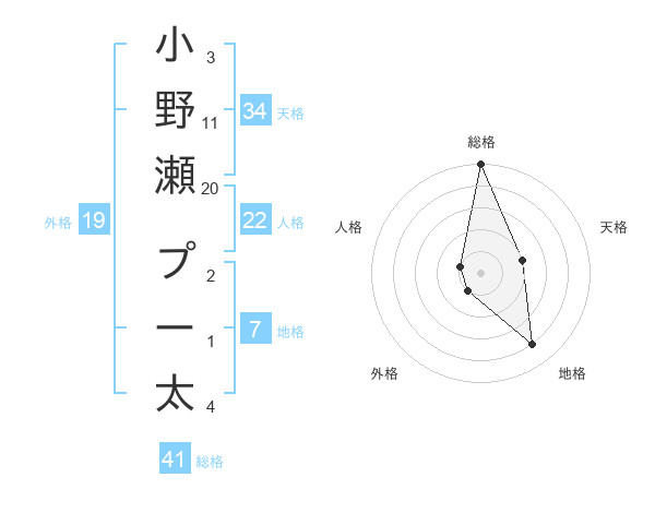 小野瀬 プー太さんの地格は7画の4点!