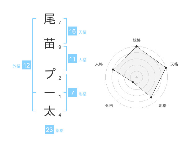 尾苗 プー太さんを姓名の画数から五運を鑑定