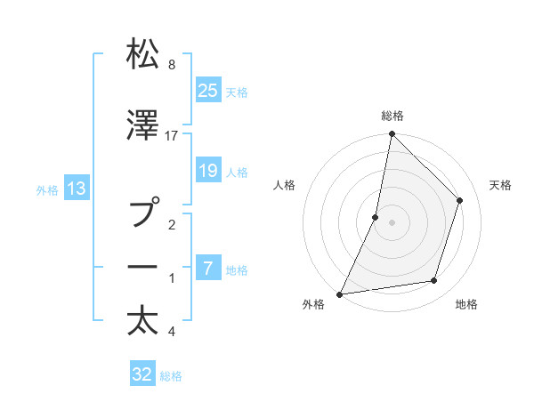 松澤 プー太さんを姓名の画数から五運を鑑定