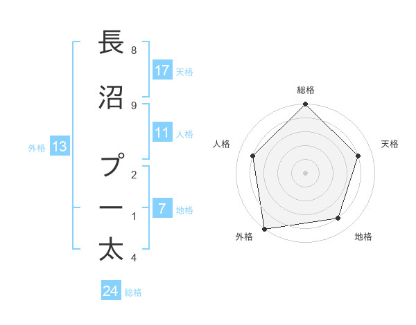 長沼 プー太さんを姓名の画数から五運を鑑定